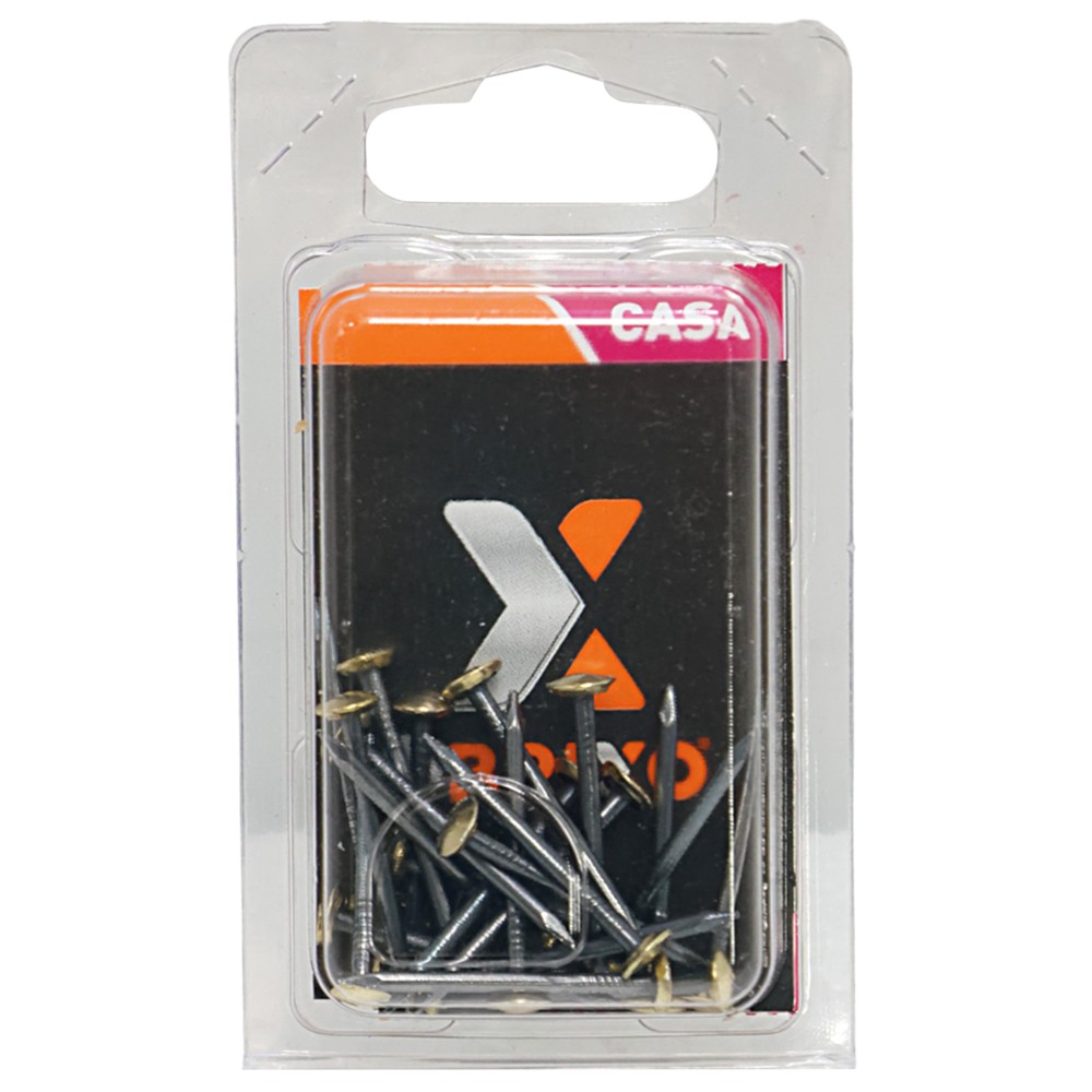 Tempered nails for light fastening of trim work and other carpentry applications especially where hiding the nail head is desired.