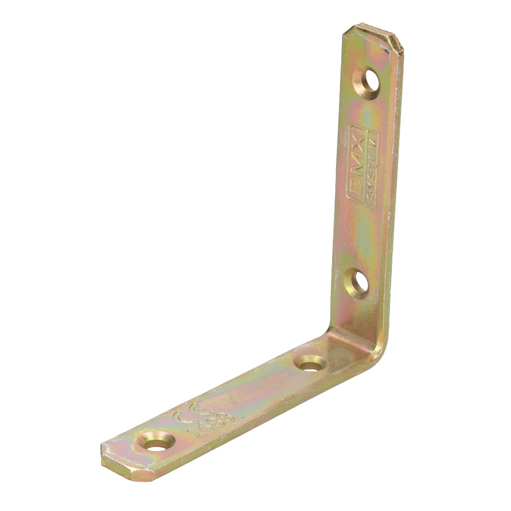 Narrow angle wood bracket, made of galvanized zinc material, with dimensions of 10x10x2x0.4 cm, in golden color, equipped with zinc powder outer coating, which protects it against corrosion and rust. It can be used to enable the best possible connection of wooden elements with each other or the connection of the wooden elements with the walls and floor. This product is suitable for use in both standard systems and individually designed connectors.