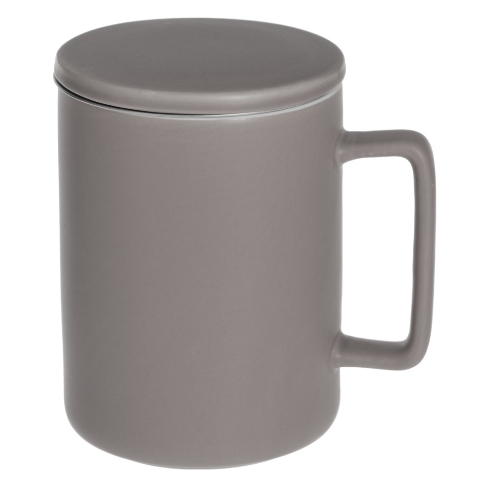 Nature tea cup with lid and filter, ceramic/stainless steel, taupe brown, 40 cl
