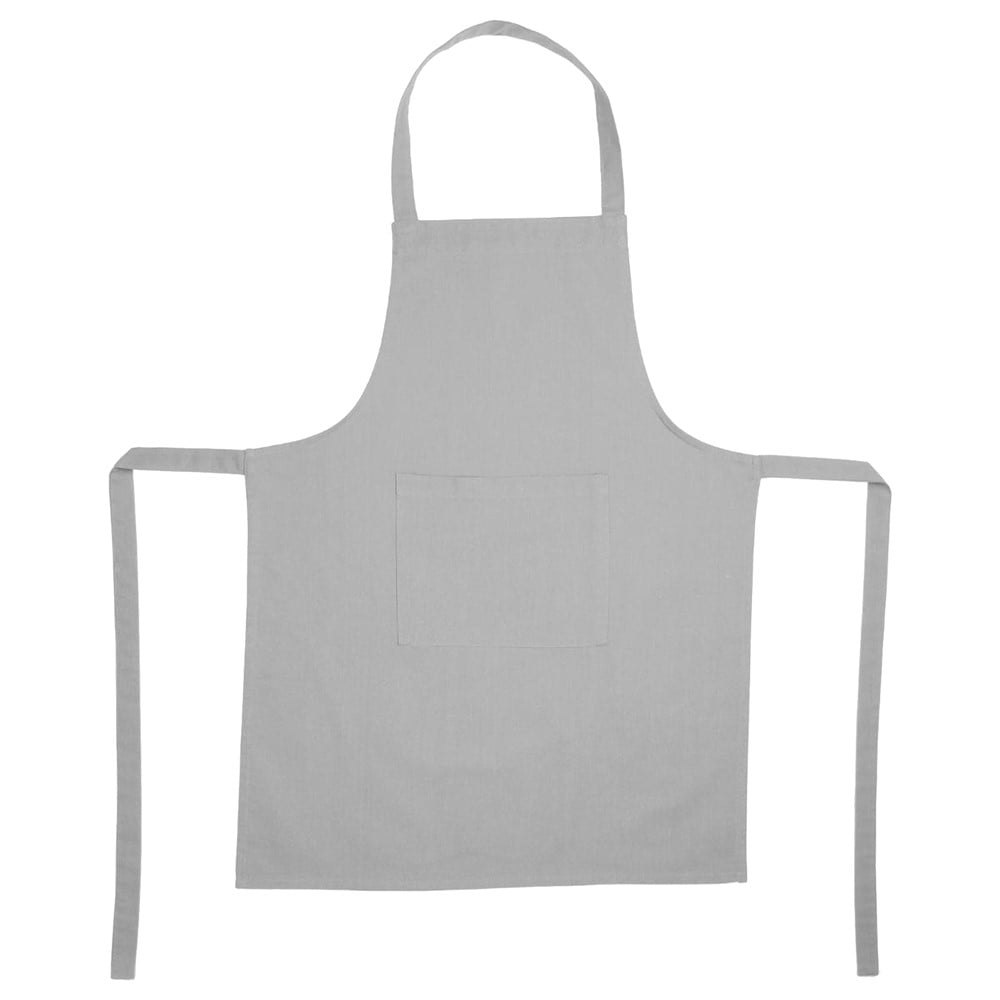 Neck-strap apron, made of cotton material, with dimensions of 80 cm in length, in gray color. It can be used in home environments, as well as in cafes, bars, restaurants, etc., as an identification clothing of the service staff, as well as to protect clothes from various food stains. The constituent material does not maintain the stains and it can be easily ironed. It is recommended to wash in the washing machine, at a temperature of 30°C.