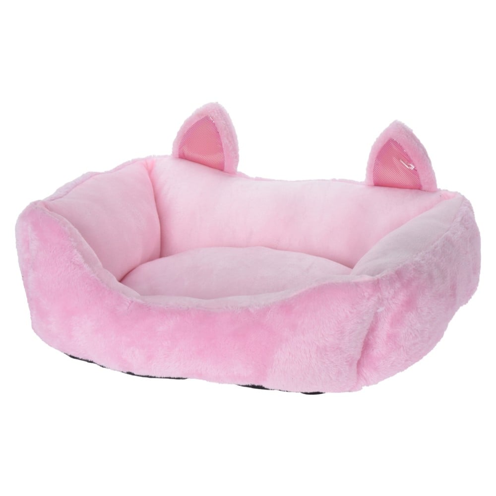 A bed suitable for a small dog - size 56 X46 X22 cm - the nest-like bed gives a sense of security - the soft edges make it nice to rest your head and observe the surroundings - color pink, with ears as decoration!