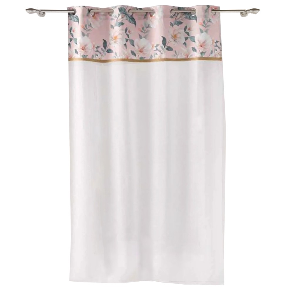 Net curtain with rings, 100% polyester, white and pink, 140x240 cm