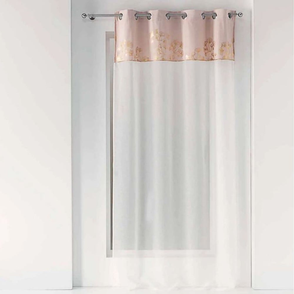 Net curtain with rings, 100% polyester, white and pink, 140x240 cm