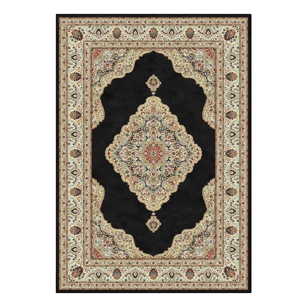Classic vintage rugs where the black field in the middle combines beautifully with the emblem and the classic frame. Special design where you can integrate it into your interior thanks to the combination of beige and black. It has antibacterial properties and is easily cleaned. It is recommended to wash professionally.