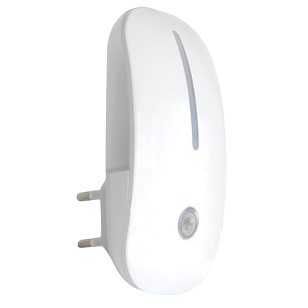 LED night light, to be plugged into a power outlet, able to remain lit permanently thanks to its harmless consumption. LED night light with integrated twilight sensor. Power 0.6 Watt, 4000 K, 50 lumens. Dimensions 11x5x5cm.