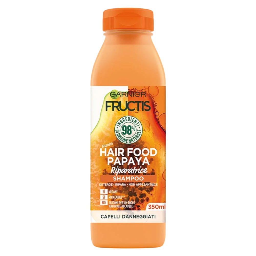 Nourishing hair shampoo Garnier Fructis, Papaya, repair, 350 ml, 1 piece. This shampoo enriched with papaya extracts helps to repair and strengthen damaged hair, providing nourishment and helping to restore shine. Gentle formula suitable for daily use.