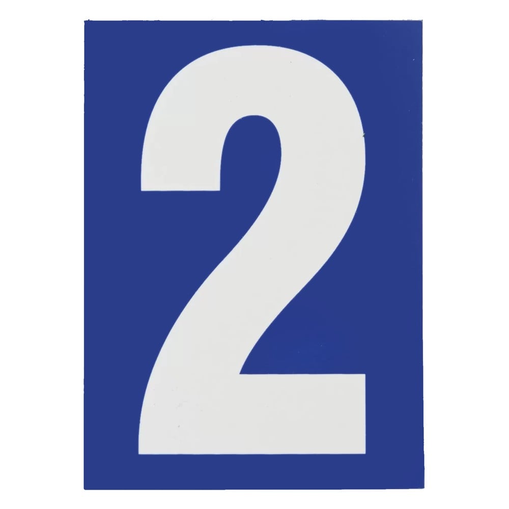 Number 2, PVC, with blue background, with adhesive, 65x90mm