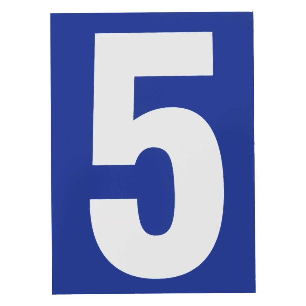 Number 5, PVC, with blue background, with adhesive, 65x90mm