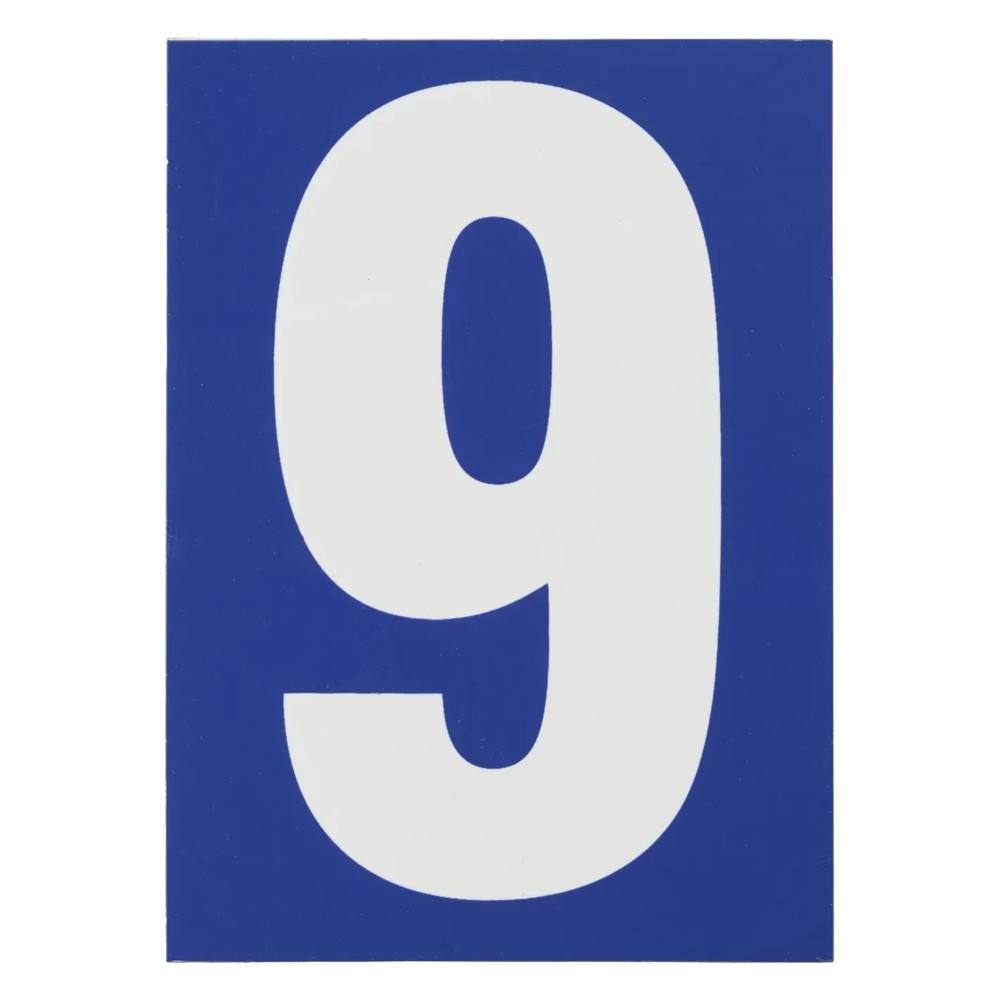 Number 9, PVC, with blue background, with adhesive, 65x90mm