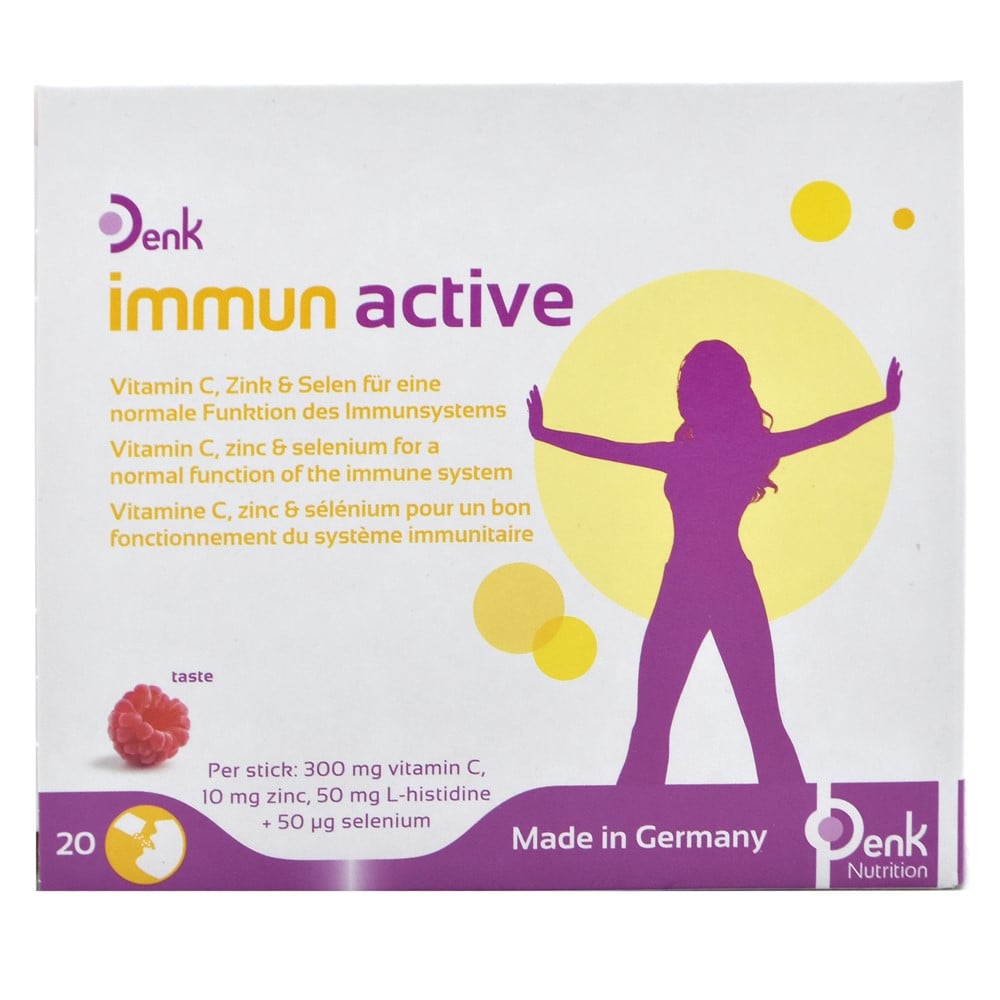 Nutritional supplement in the form of sachets, with a formula enriched with vitamin C, zinc, selenium and L-histidine (alpha-amino acid necessary for protein biosynthesis in the body), with raspberry flavor. It is used to strengthen the immune system, preventing viral infections during the winter season and protecting the body in cases of weakened immunity due to stress, unhealthy diets or poor sleep quality. Vitamin C, zinc and selenium have a positive effect on the immune system and protect cells from oxidative stress. L-histidine promotes rapid absorption of zinc by the body. Free of lactose or gluten. How to use: It is recommended to use one sachet per day, which can be consumed with or without water.