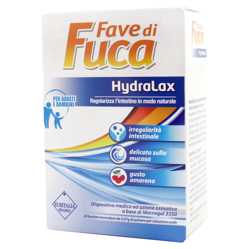 Fave Di Fuca Hydralax is a nutritional supplement, useful for regulating the intestines in case of constipation in adults and children, thanks to its ability to soften stools. How to use: for children 2-4 years old it is recommended 1 sachet 2 times a day between meals, dissolved in 50 ml of water, for children 5-12 years old it is recommended to use 1 sachet 3 times a day between meals, dissolved in 50 ml water, while for adults and adolescents over 12 years it is recommended to use 2 sachets 3 times a day between meals.