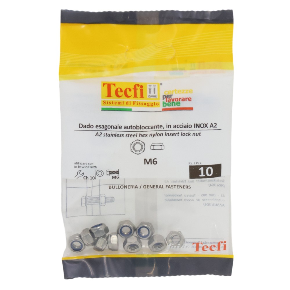 Nylon insert lock thin hexagonal nut, INOX A2 (AISI 304) DIN985, M6mm, Bag 10