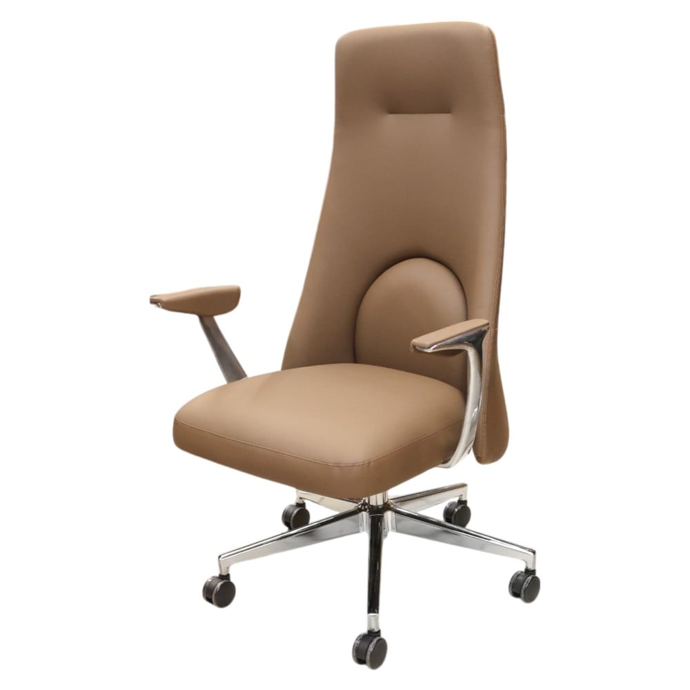 Office chair, Pu upholstery, aluminum arm, chrome steel base, nylon castors, brown