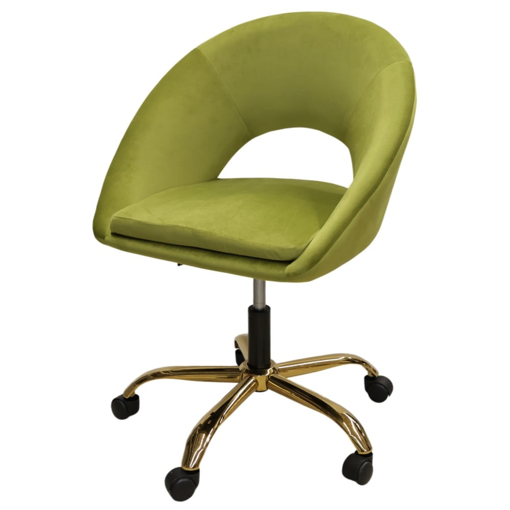 Office chair, Salmart, velvet upholstery, metal structure, green/golden, 50x49xH80-90 cm