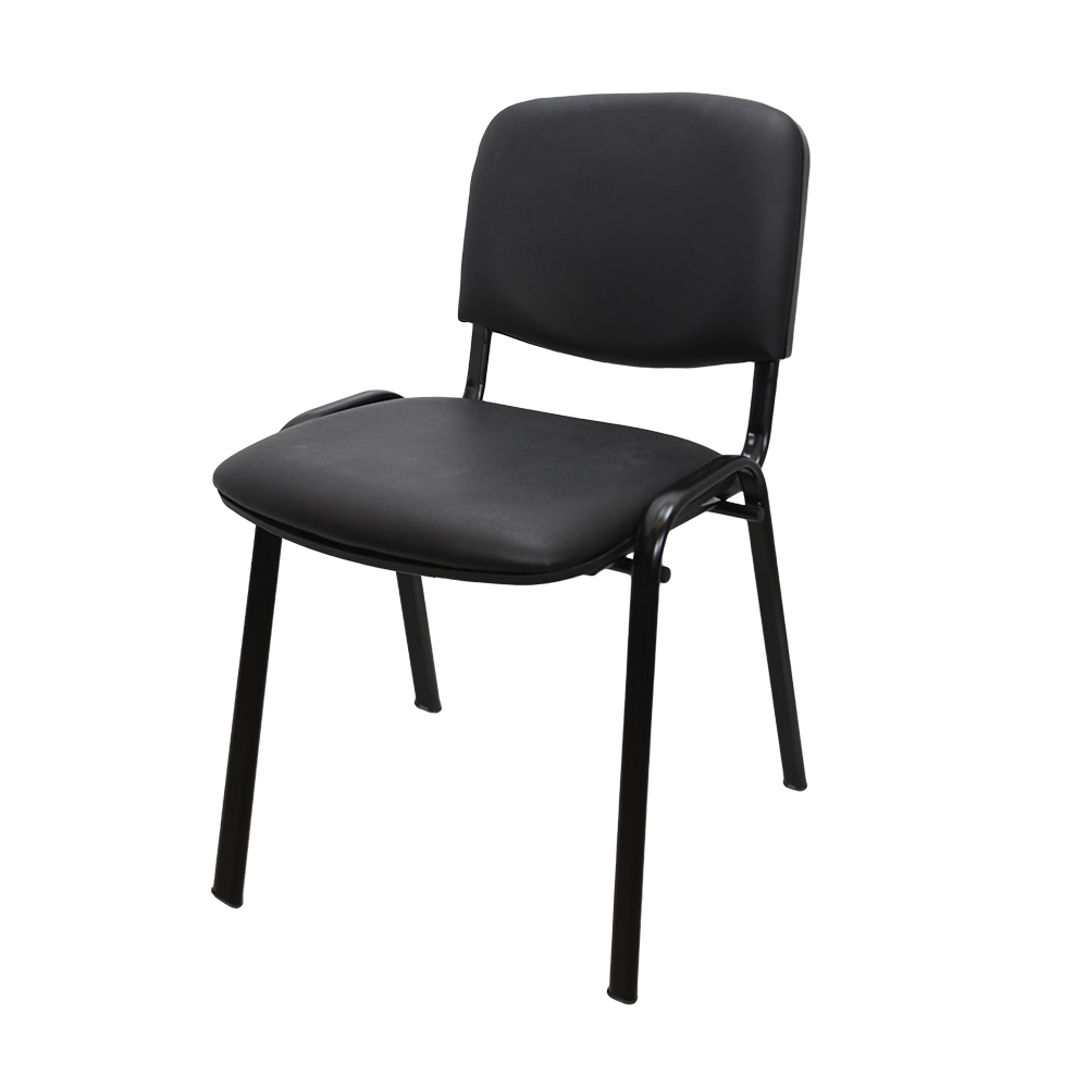 A wonderful visitor chair with leatherette is sure to satisfy your visitors or customers. Leatherette upholstery with foam padding and iron frame in black finish make this comfortable chair.