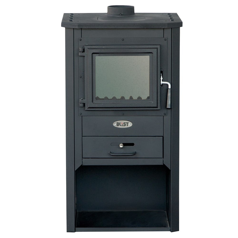 BLIST solid fuel stoves are designed in a way to enable efficient combustion of solid fuels with the possibility of adjusting and regulating the amount of input air required for the combustion process. The stove consists of parts from steel, with doors and top plate made of cast iron or steel (depending on the model of the stove), and the grate in the combustion chamber made of cast iron. All stoves are plated inside with schamotte bricks, which provides long-term heat accumulation. The stoves are painted with special heat resistant paint. The glass on the door is the first class heat resistant ceramic glass.The stoves are designed for space heating of a wide spectrum such as living rooms, offices, restaurants, schools, garages, warehouses, etc.The glass must not be cleaned with wet cloth nor sprinkled with water when is hot. Otherwise, the glass may crack. Very cold objects should not be placed on the top plate when is hot. Otherwise the top plate may crack. Do not use alcohol, petrol or any other liquid fuel. Some parts of the stove can reach very high temperatures during operation the stove,thus it is required adequate precaution while using the stove. Do not allow children to handle and play near the stove.