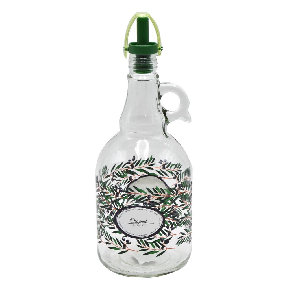 Bottle of oil or vinegar with decor. Very practical thanks to the cork as well as the square shape. Good quality at a competitive price.