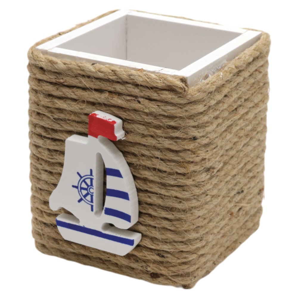 An organizing box made of natural wood/rope materials, which give a clean and natural look. The wood and rope structure provides a sense of durability, making this box an excellent choice to easily organize your objects and enhance the look of any space.
