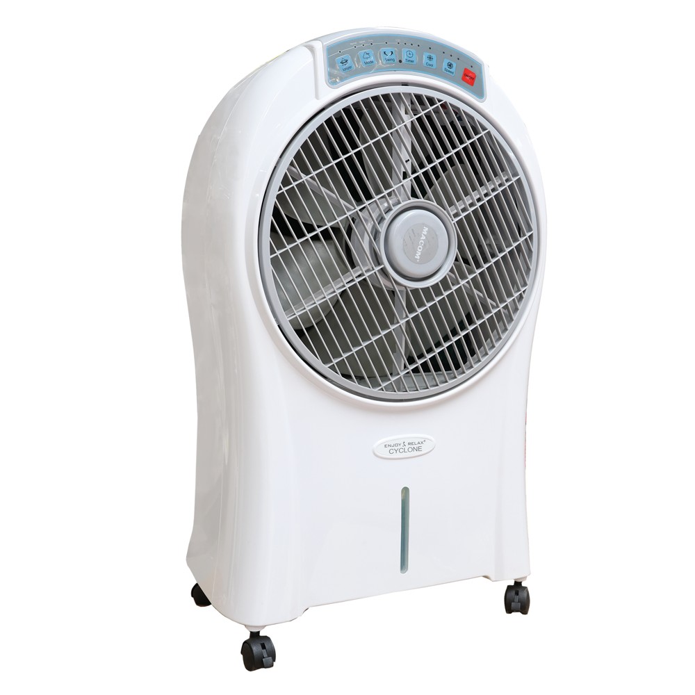 Innovative evaporative water cooler with ionizing function that allows you to obtain fresh and clean air in any environment. Thanks to the two ice packs included, it is possible to increase the cooling effect.