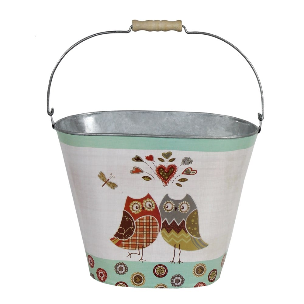 Oval flower pot, metallic, silver / colorful printing, 27.5x18.5xH22 cm
