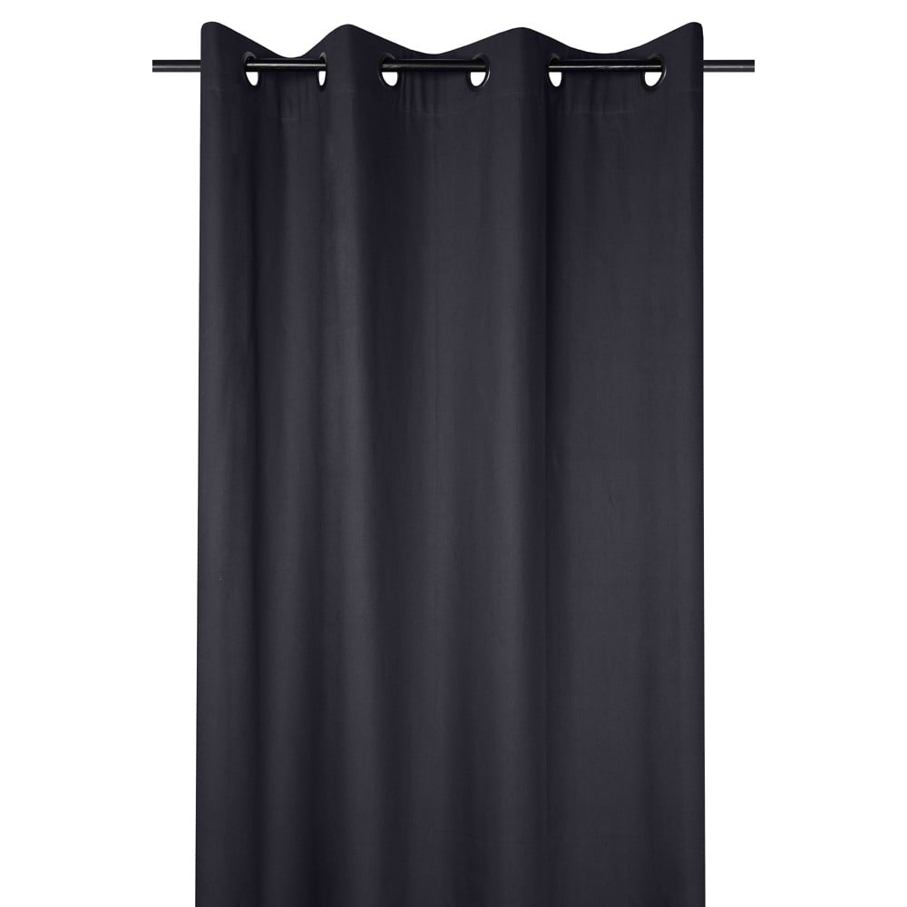 Oxford full curtain with rings, cotton, black, 140x260 cm
