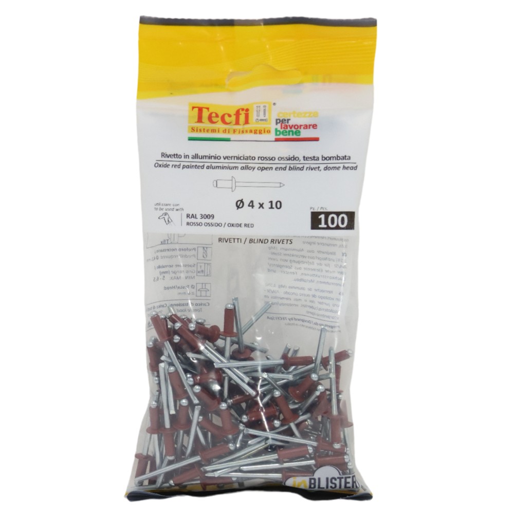 oxide red dome blind rivets, al/zp steel RAL 3009 , Ø 4x10mm, Bag 100