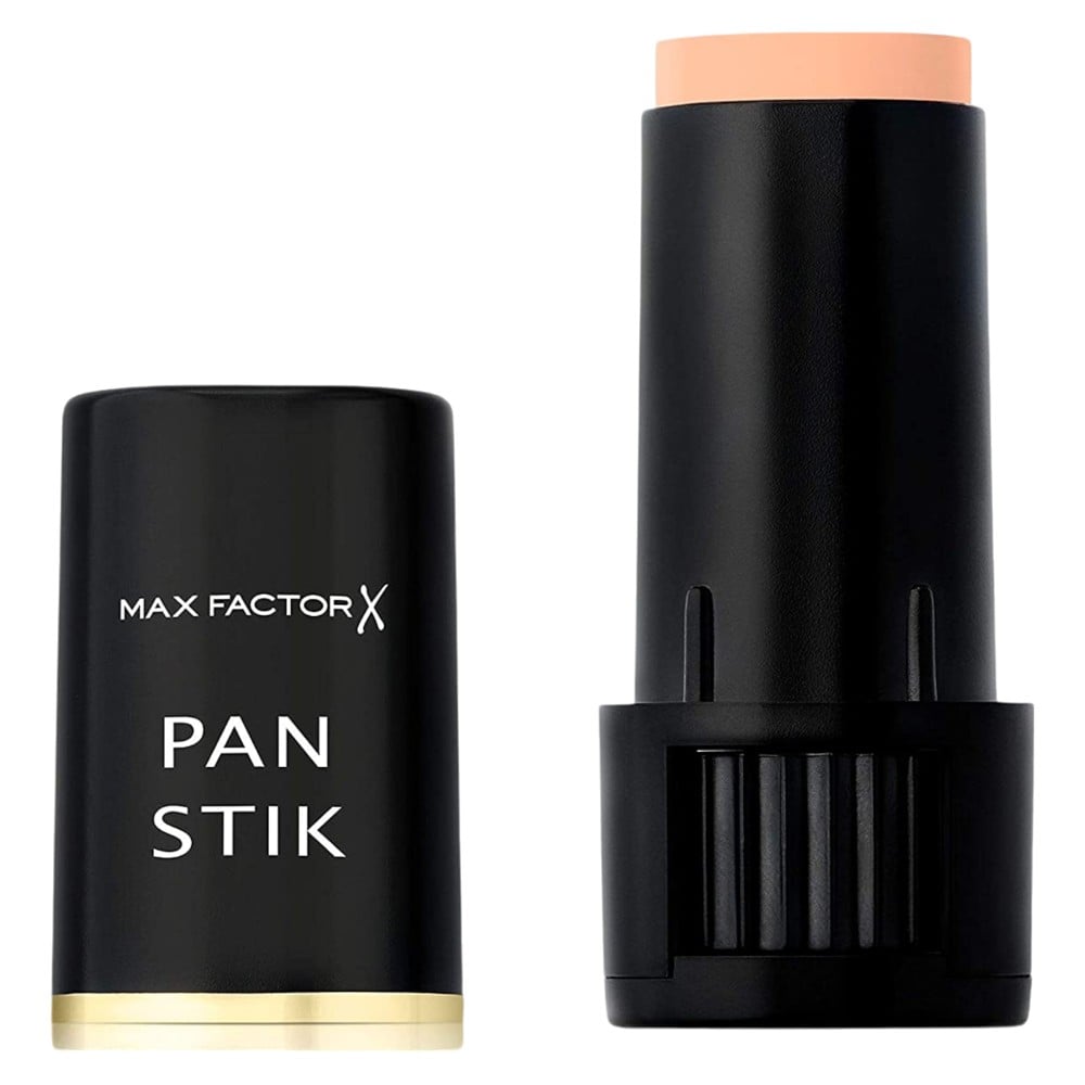 Max Factor Pan Stik Foundation gives you full coverage with less effort. Ideal for convenient, quick and brilliant touch-ups to cover blemishes, pigmentation and even soften the appearance of lines and wrinkles. Match the foundation to the skin tone of your jawline to find the right shade for you. Max Factor Pan Stik can be used all over your face or to hide single blemishes. Always apply your foundation in good, natural light to ensure even coverage. Apply with fingers to warm the Pan Stik and ensure sheer coverage.