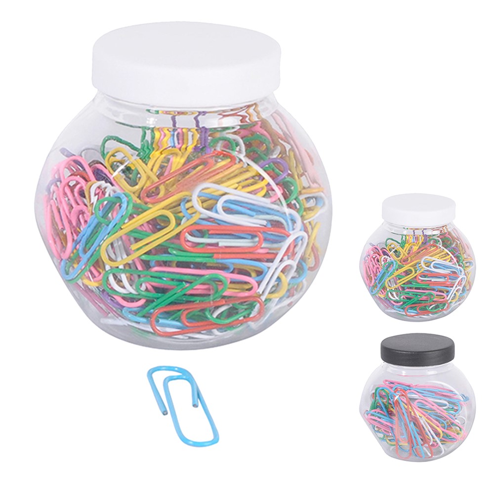 Paper clips, made of metallic material with plastic coating, in two different sizes, with different linking capacities of paper sheets, in a variety of colors. The paper clips are used to link various documents, paper homeworks and different artworks. This product is suitable for use at home, in schools, universities, offices, stationery offices, etc.