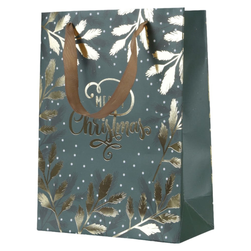 Paper gift bags, Christmas motif, green and gold color, L10 x W30 x H42 cm