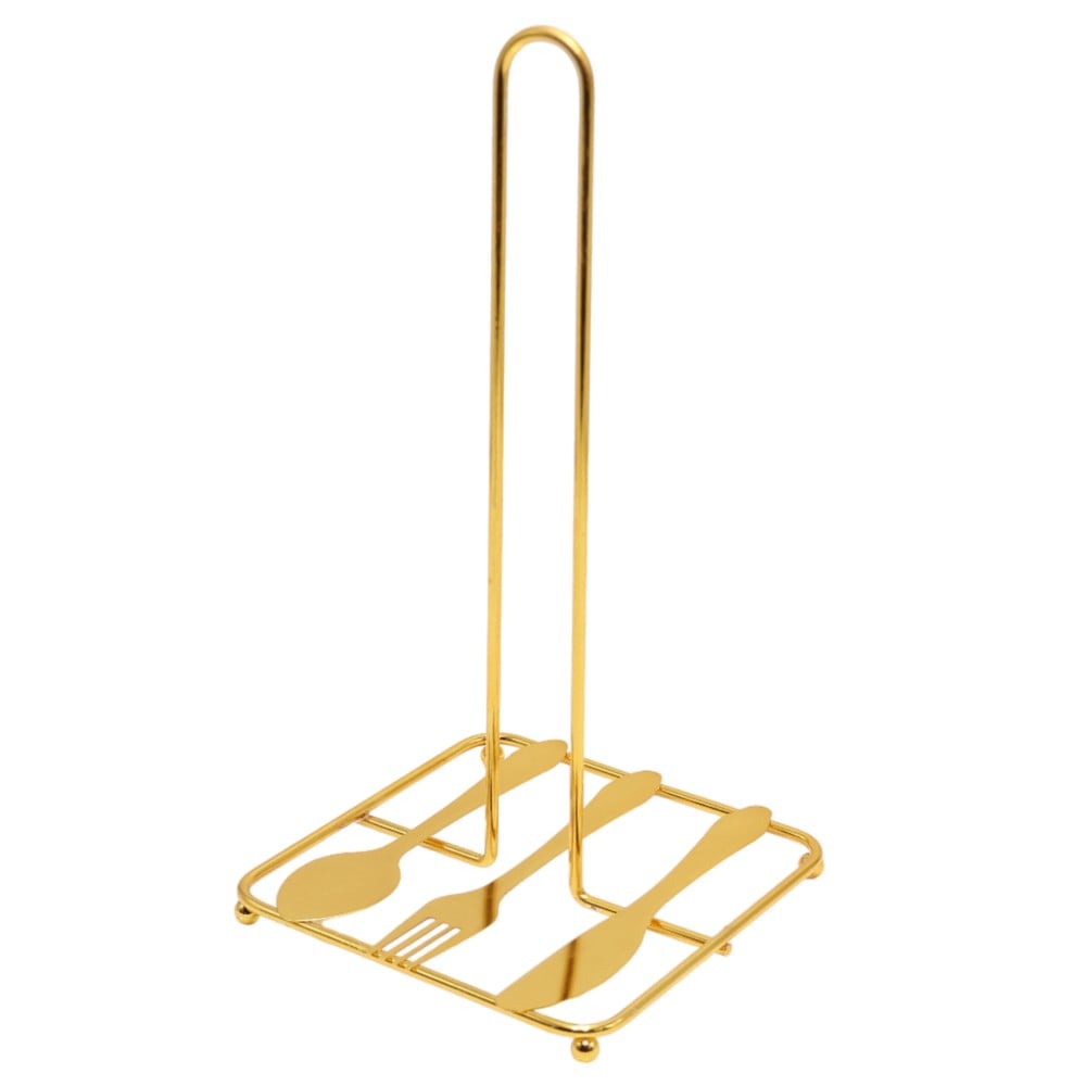 Metal file holder, with gold details, dimensions 16x16xH29 cm. This holder offers a stylish way to organize and store paper towels in the kitchen.