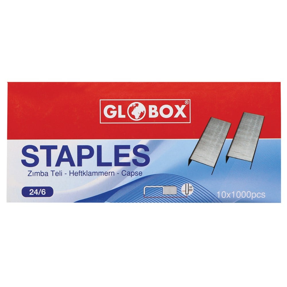 Staples, which are made of metallic material, with dimensions of 24/6. The staples are used to join various documents and papers in schools, offices, stationery stores, etc., and they have a capacity of up to 20 sheets. This product is suitable for use with a 24/6 stepler (8681137327035, 8699158062804).