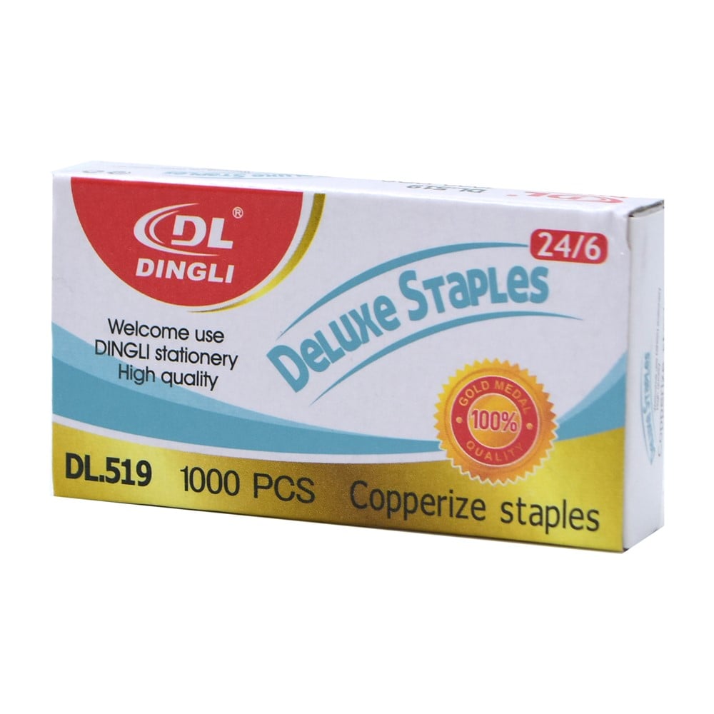 Staples, which are made of metallic material, with dimensions of 24/6. The staples are used to join various documents and papers in schools, offices, stationery stores, etc., and they have a capacity of up to 20 sheets. This product is suitable for use with a 24/6 stepler (8681137327035, 8699158062804).