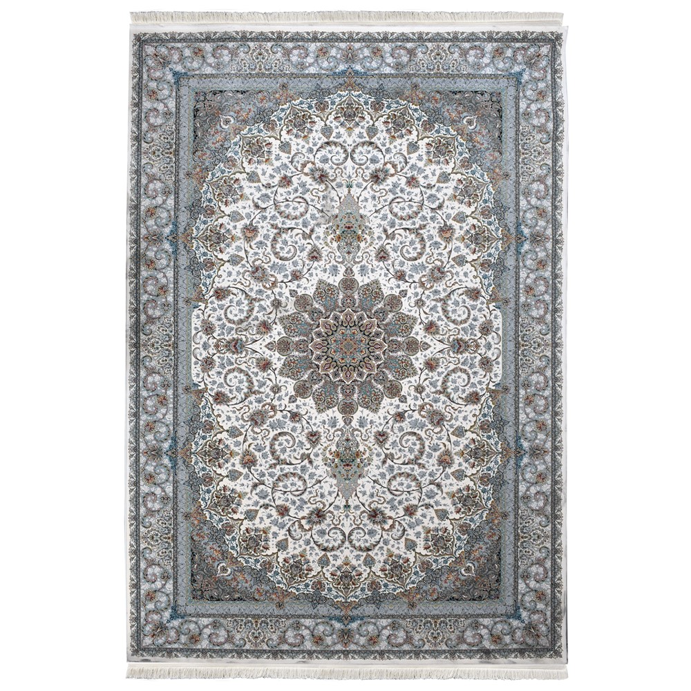 Persian carpet comprising 100% acrylic. gray color with different colors. Fringes of cotton and very madhje density of 2 million 400 thousand knots per square meter of carpet provide this quality and longevity. Thanks very large carpet density is safe from dirt as if immediately cleaned they fail to penetrate to the base of the carpet. 6mm length of string. I recommended to bathe in a professional manner.