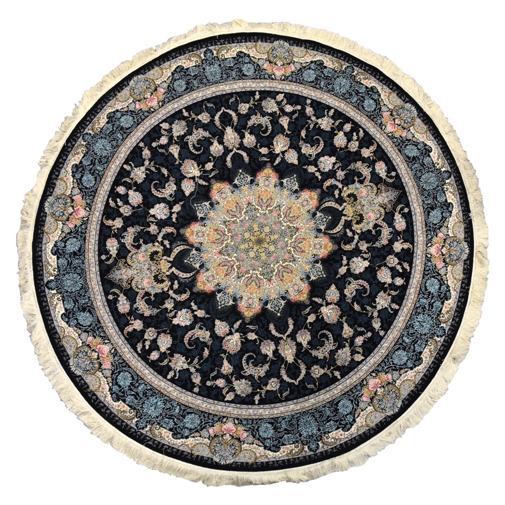 Persian round carpet, 100% acrylic, dark blue with different colors, Dia. 200 cm