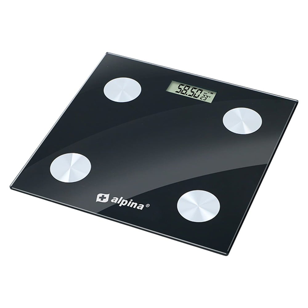 Your weight provides insight into your health. As you would expect from scales, this electric personal scale from Alpina indicates how much you weigh. In addition, the scale provides a body analysis, including your fat percentage, muscle mass and BMI. If you want, the smart scale communicates via Bluetooth with a special app on your phone. In addition, it can remember the details for 8 people and shows the room temperature. The black scale measures digitally in steps of 100 grams and works in units of kilograms, pounds or stones as desired. It can weigh people up to 180 kilos. Too heavily loaded? Then it shows an overload message. You will also see this on the LCD display ('Lo') if the battery is weak. The required batteries (2x AAA) are included, so you can use the scale immediately after receipt. To save energy, the device switches off automatically after 10 seconds if no one is standing on it. For a good measuring result, place the device on a flat, hard surface and step onto the black surface of glass and steel with bare, dry feet.