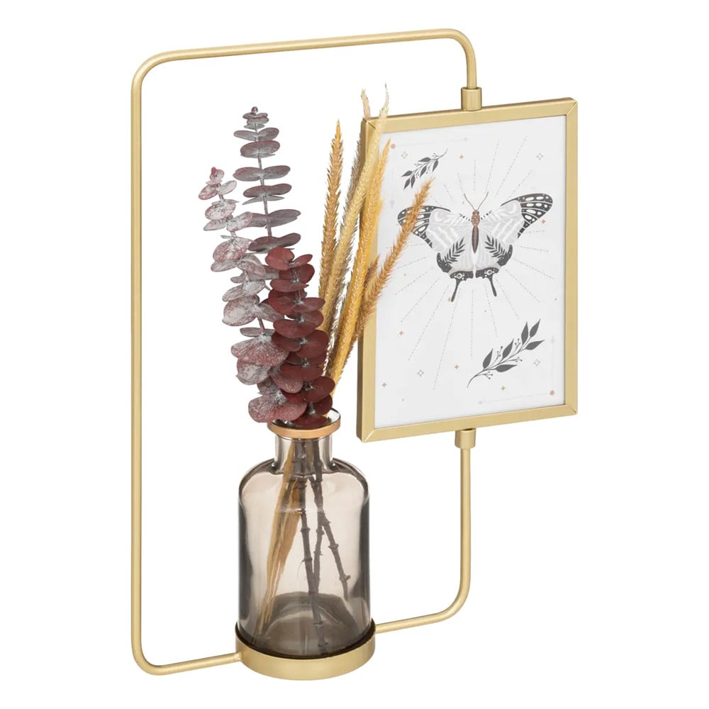 Looking for an original object to highlight a photo that is dear to you?! This frame is made for you! Its bohemian side will appeal to lovers of natural decor. It consists of a vase of dried flowers and a 10x15 cm frame. Its golden frame adds an elegant touch. Ideal to place on a shelf, table, or wherever you want.