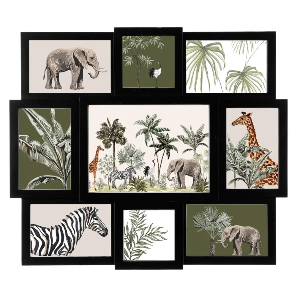 Photo holder, Cali, 9 photos, polystyrene/glass, black 48x2xH42 cm