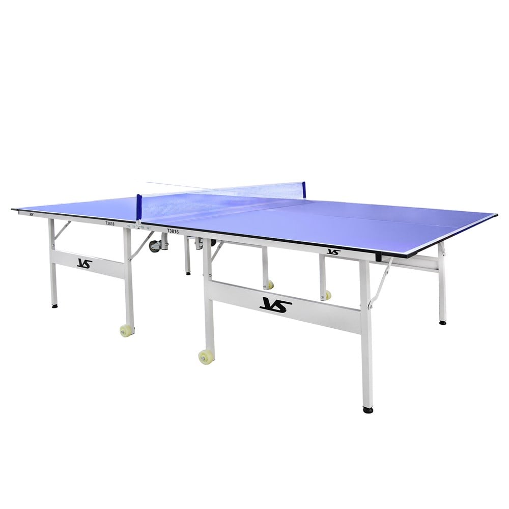 Ping Pong Table is ideal for recreational play! Ping Pong Table delivers a quality play surface and sturdy construction at a very affordable price. The table is pre-assembled in 2-pieces. The Ping Pong Table is easy to set up without tools and is ready to go with a deluxe net and post set included. The tables can also be used separately to become two large multi-purpose tables. This durable table tennis table is surrounded by a sturdy steel apron, with both steel legs and leg supports.