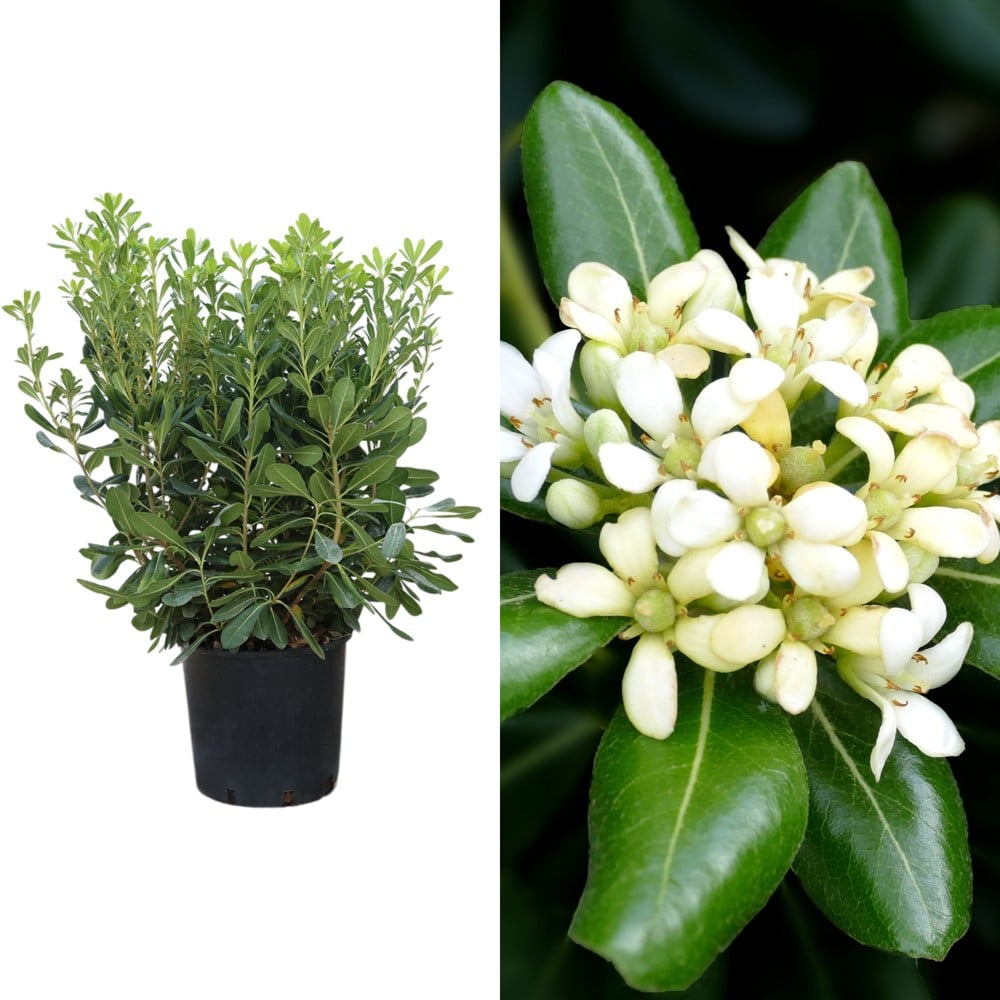 Pittosporum tobira, is a compact, rounded evergreen shrub with lustrous, deep green leaves, contrasting with honey scented, creamy white flowers from late spring to summer. For best results water Pittosporum tobira regularly and feed once a month when in growth. Water sparingly in winter. Water the shrubs daily or every few days until they get established and then weekly or as needed depending on rain conditions. For the first growing season, water deeply to help the roots grow and establish. Early spring is also a good time to fertilize this shrub.