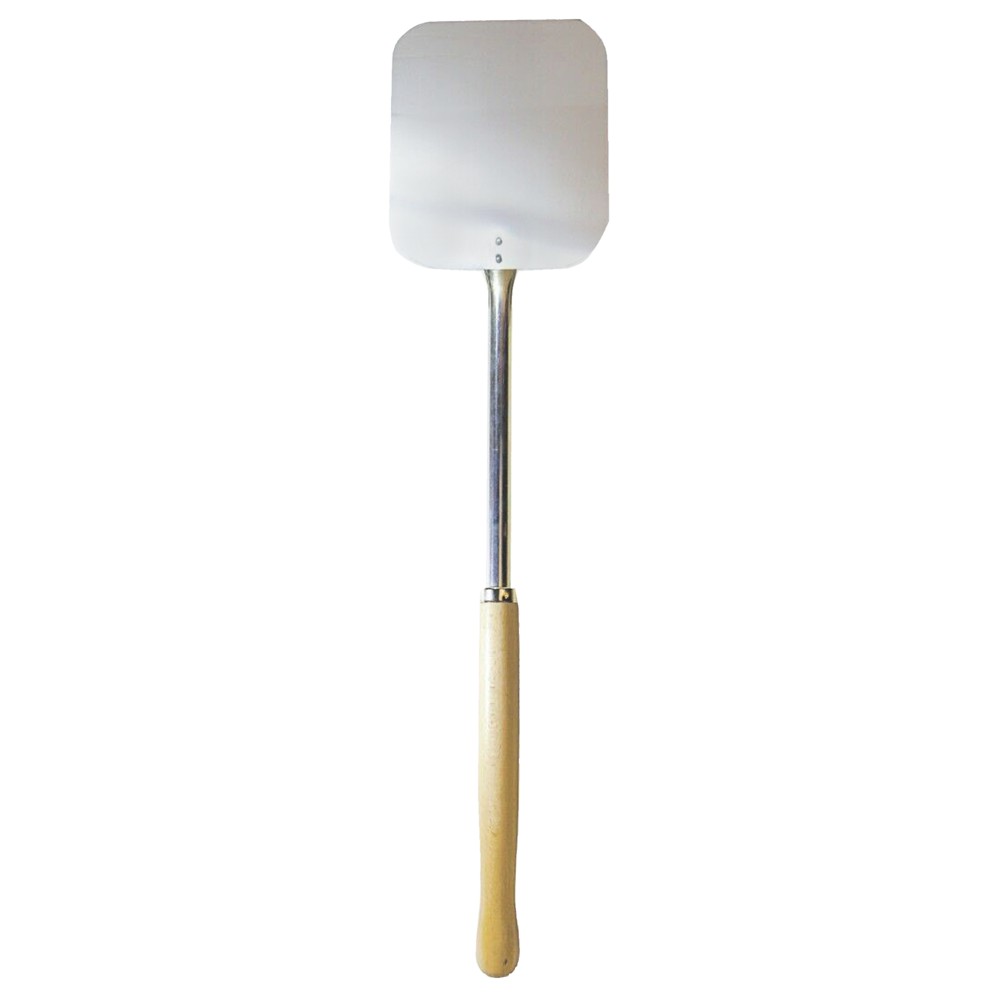 Pizza shovel cm 18x21x80h, Its rectangular shape and small size of 18x21 cm make it ideal for putting small pizzas in and out of the oven. Made of aluminum, a light and resistant material, the shovel is equipped with a comfortable 61 cm long beech wood handle to ensure a firm and comfortable grip
