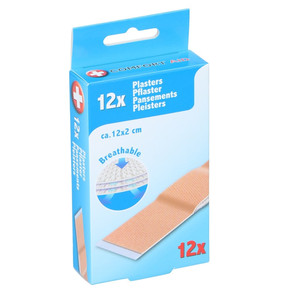 First aid bandage made of polyvinyl material in a rectangular shape, in brown color, Used to bandage small wounds, scratches, etc. Used for travel, home and car. The set contains 12 pieces.