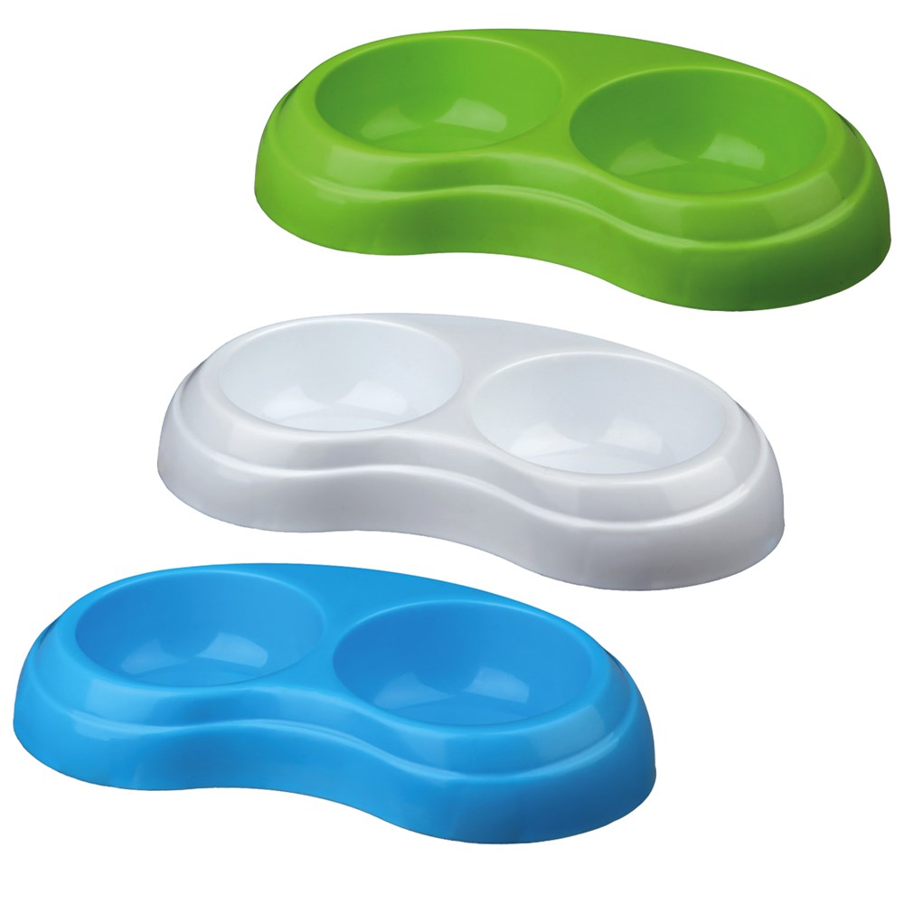 Plastic double bowl, Trixie, 2x0.2 L,10 cm, mix