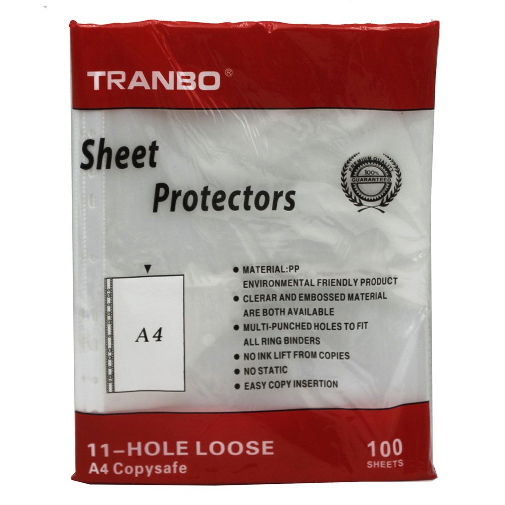 Sheet protectors for documents, made of transparent plastic material, with dimensions of 30x21 cm, with a thickness of 60 microns, with 11 holes on the side of the sheet, that allow the binding of documents in metal ring folder binders. The sheets are used for storing and organizing various documents in offices, archives, schools or other institutions. This product is suitable for use with A4 format documents and with ring folder binders (63063, 63080, 63066, 63070, 63068, 63069, 52347, 55371, 55346, 55376).