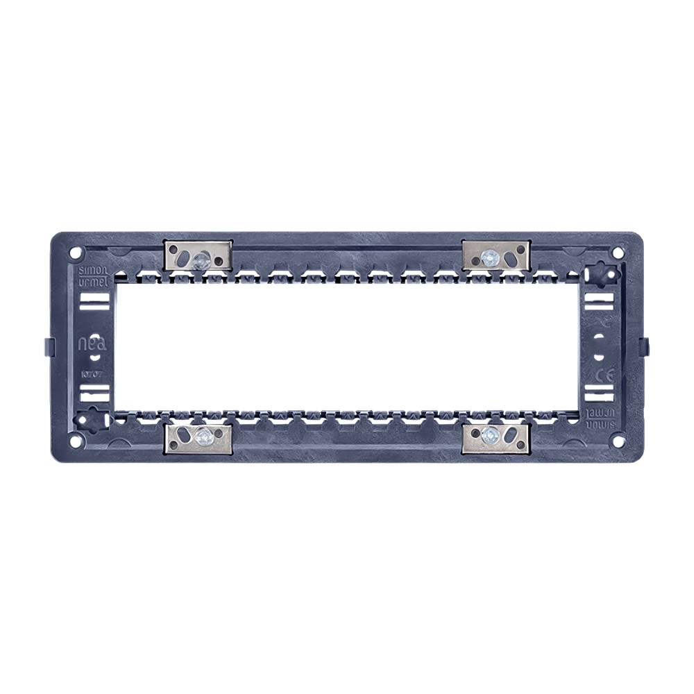 Plastic support, 7 modules, Simon Urmet brand. This support offers the possibility of mounting up to seven electrical modules, providing excellent organization for complex electrical installations. Suitable for use in various environments, such as homes, offices or commercial environments. The modern and durable design ensures easy and safe installation.