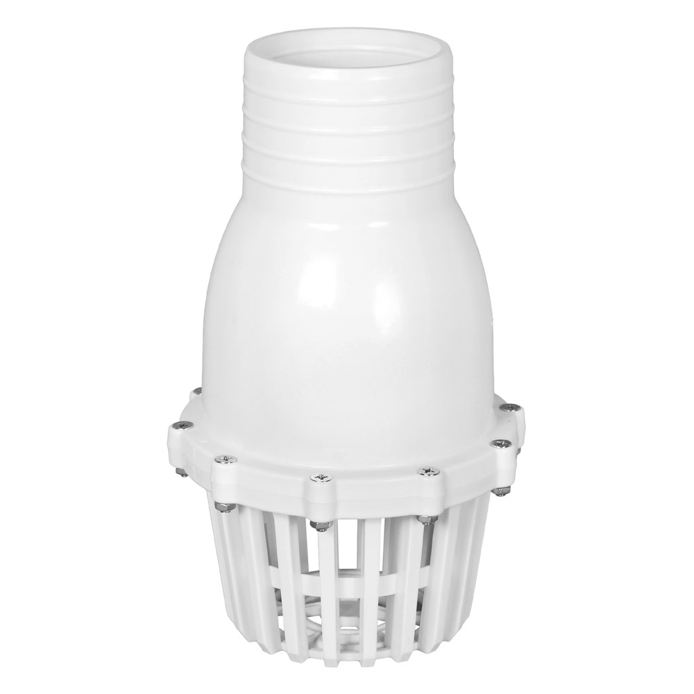 The plastic foot valve is used with jet and centrifugal pumps to filter debris from lakes, wells, and ponds while keeping the pump primed. The thermoplastic valve is corrosion resistant and easy to install