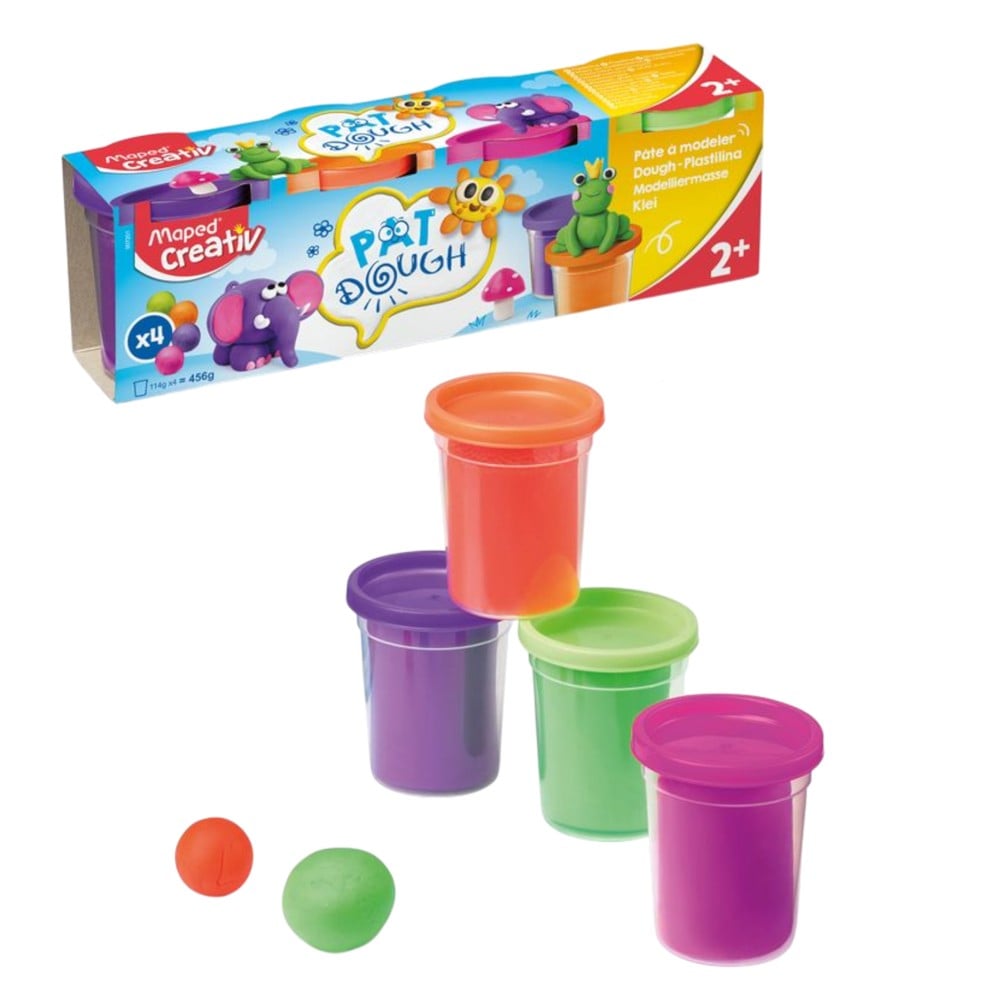 Plasticine, Maped Creativ, Pat Dough, 114g x 4. It is soft in texture, non-sticky and easy to handle, making it ideal for children to develop their dexterity.