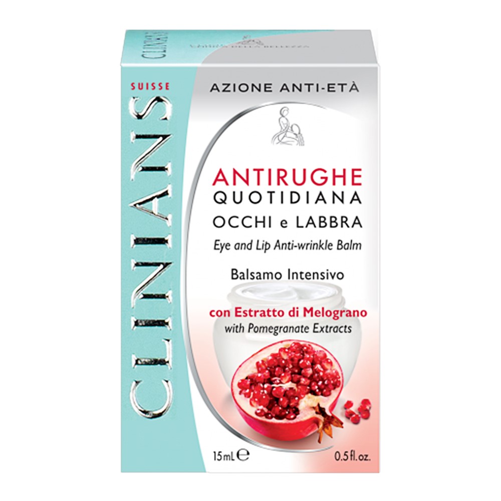 Pomegranate anti-wrinkle cream for eye and lip treatment, Clinians, plastic, 15 ml, turquoise and red, 1 piece