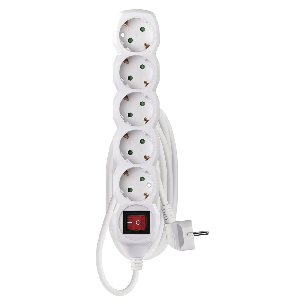 power supply extension cords (schuko type) • 5 sockets + switch • ~230 V/10 A max • length 3 m • packaging: 1 pc., plastic bag • carton quantity: 1/10/20 •