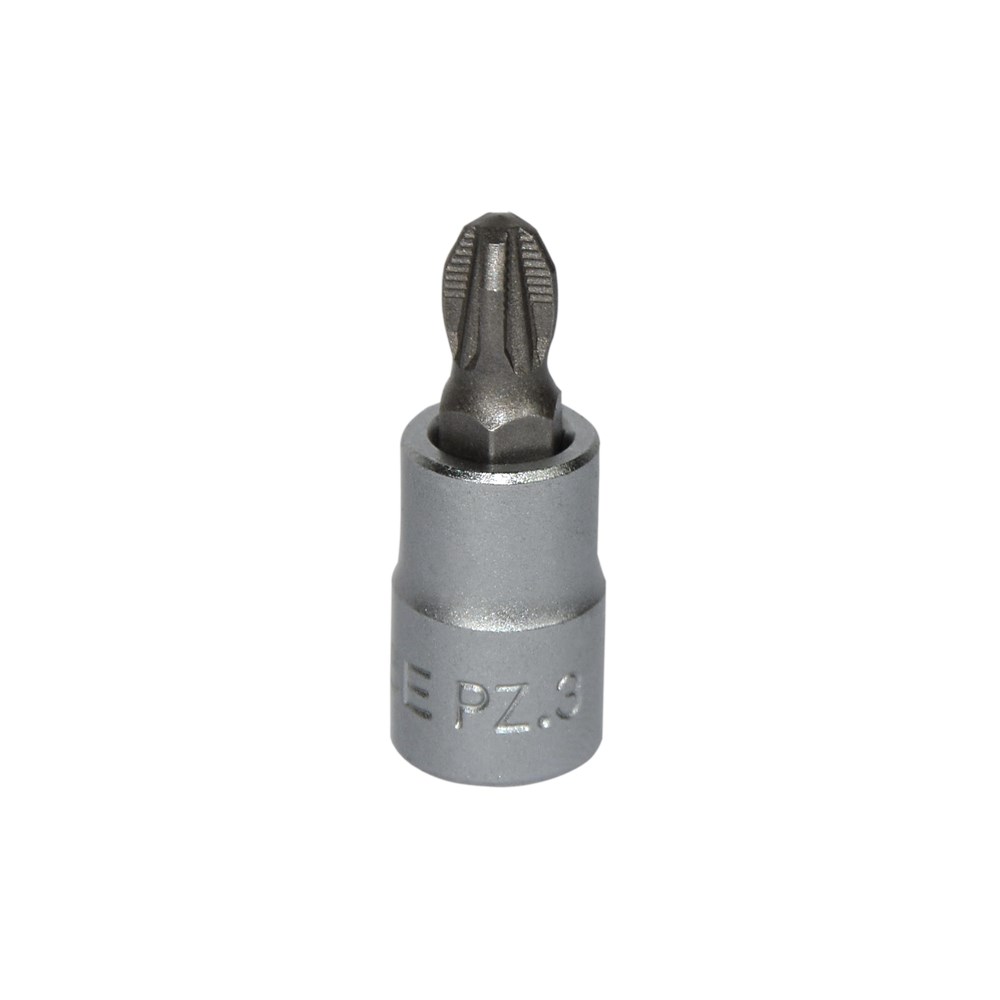 Pozidriv drive bits sockets are manufactured from chrome-vanadium steel and heat treated for added strength and wear protection; providing durability for a lifetime of hard use. Each bit has been heat treated and hardened for improved durability. The polished chrome finish resist rust and corrosion and easily wipes clean of oil and dirt.For use with 1/4 in. drive tools