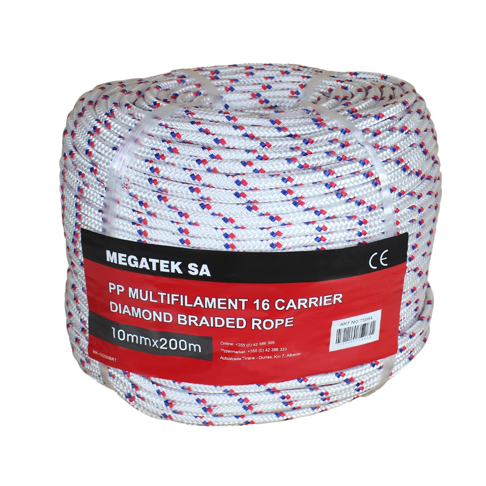 You're reviewing:PP multifilament 16-strand Diaond Braided Rope,white with one blue and one red,Size:10mmx200m